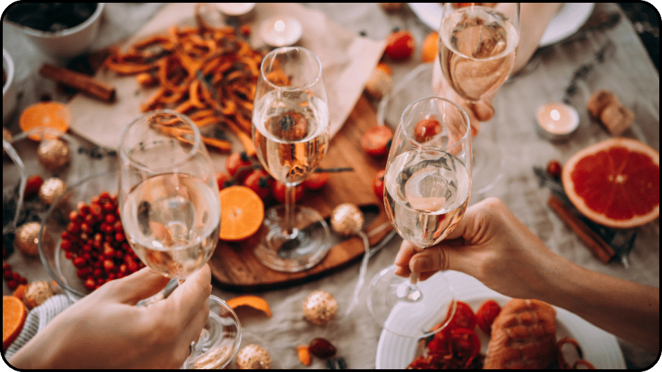 와인은 직사광선이 없는 서늘한 곳에서 눕혀서 보관해야 합니다. 만약 연말에 바로 즐길 계획이라면 특별한 와인 랙을 사용하여 장식 겸 보관하는 것도 추천합니다. 와인의 품질을 유지하며 동시에 테이블 위를 장식하는 역할을 할 수 있습니다.